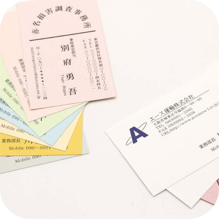 ビジネスシーンの必需品とも⾔える名刺やハガキ。環境に配慮した台紙もお選びいただけます。